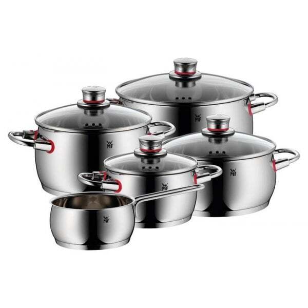 WMF Quality One pottide komplekt toob restoranikvaliteedi Sinu kodukööki. Praktilised ja jahedaks jäävad käepidemed koos vastupidavate kvaliteetsete materjalidega tagavad mugava ja ohutu kasutamise päevast päeva. WMF-i patenteeritud Cool+ tehnoloogia piirab kuumuse ülekannet potist käepidemetele, pakkudes turvalist ja mugavat toiduvalmistamiskogemust. * *Ei kehti ahjus kasutamisel • Komplekti kuuluvad: Suppipott 16/20/24 cm (2.0/4.1/6.8 L) klaaskaanega, madal hautamispott 20 cm (3.4 L) klaaskaanega ja kastmepott 16 cm (1.7 L) • Integreeritud mõõtemärgistused muudavad täpse mõõtmise lihtsaks • Lai valamisserv tagab mugava ja tilkumisvaba valamise, vältides segadust köögis • Kvaliteetsed klaaskaaned: Kuumakindlad kaaned võimaldavad toiduvalmistamise hõlpsat jälgimist • Aurutusavad: Sisseehitatud aurutusava teeb täiusliku aurutamise, aeglase küpsetamise ja hautamise võimalikuks