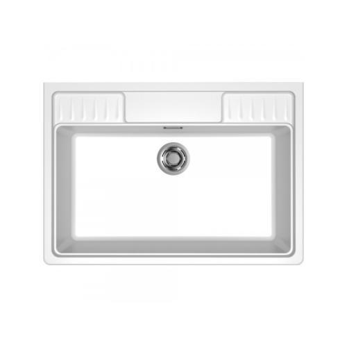 Nõrutusalaga valamu, vääristeras sile, sõelkorv-ektsenterventiil 3 1/2", pöördnupuga avatav, tööpinna paksus min. 30 mm, 80 mm nurgaraadius, valamu 79 x 50 cm, väljalõige 77 x 48 cm (R=20 mm), kauss 34x42x16 cm.