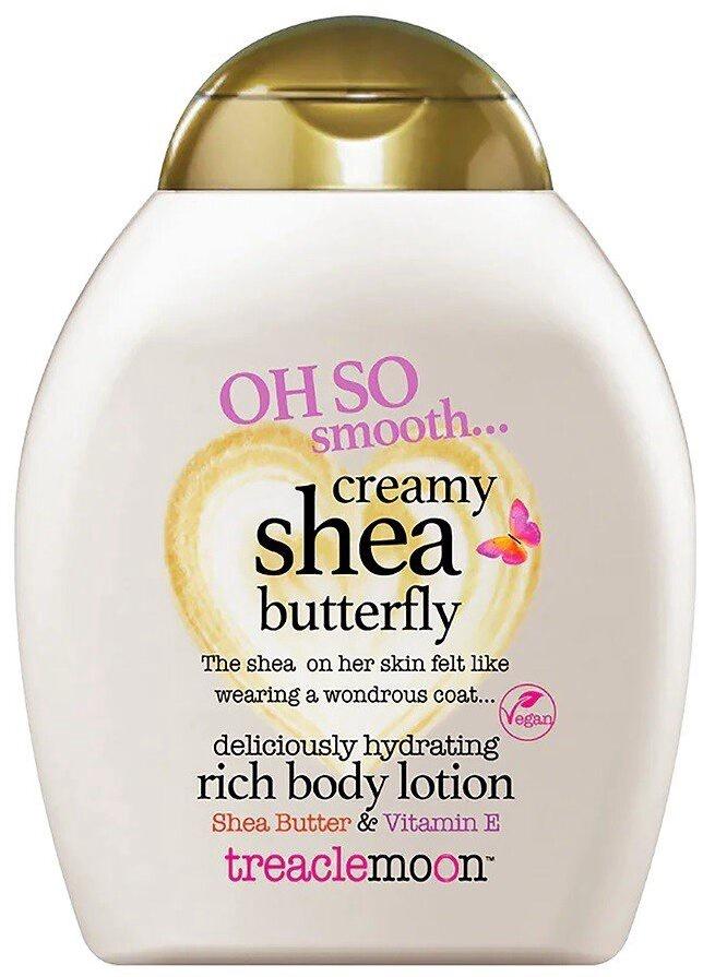Veetlevalt niisutav, kreemine ja 100% vegan Treaclemoon Creamy Shea Butterfly kehakreem on rikastatud looduslike nahka armastavate koostisosadega nagu makadaamiaõli, sheavõi ja kirss, mis hellitavad kõiki nahatüüpe. Jätab nahale suurepärase lõhna ja sametpehme tunde. Pudel on valmistatud taaskasutatud plastikust.