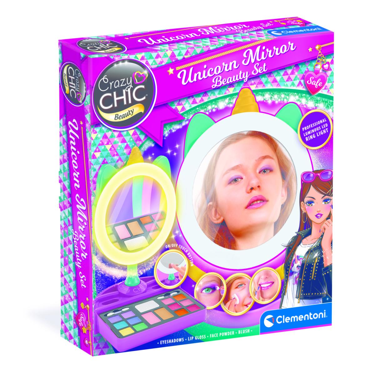 Imeline meigikomplekt koos valgustatud peegliga.Omadused:Komplekti kuulub: 6 lauvärvi, 6 huulepulka, 3 näokontuurimise tööriista, 2 aplikaatorit ja ükssarviku kujuline peegel.Meigitooted on ohutud ja kergesti eemaldatavad veega.