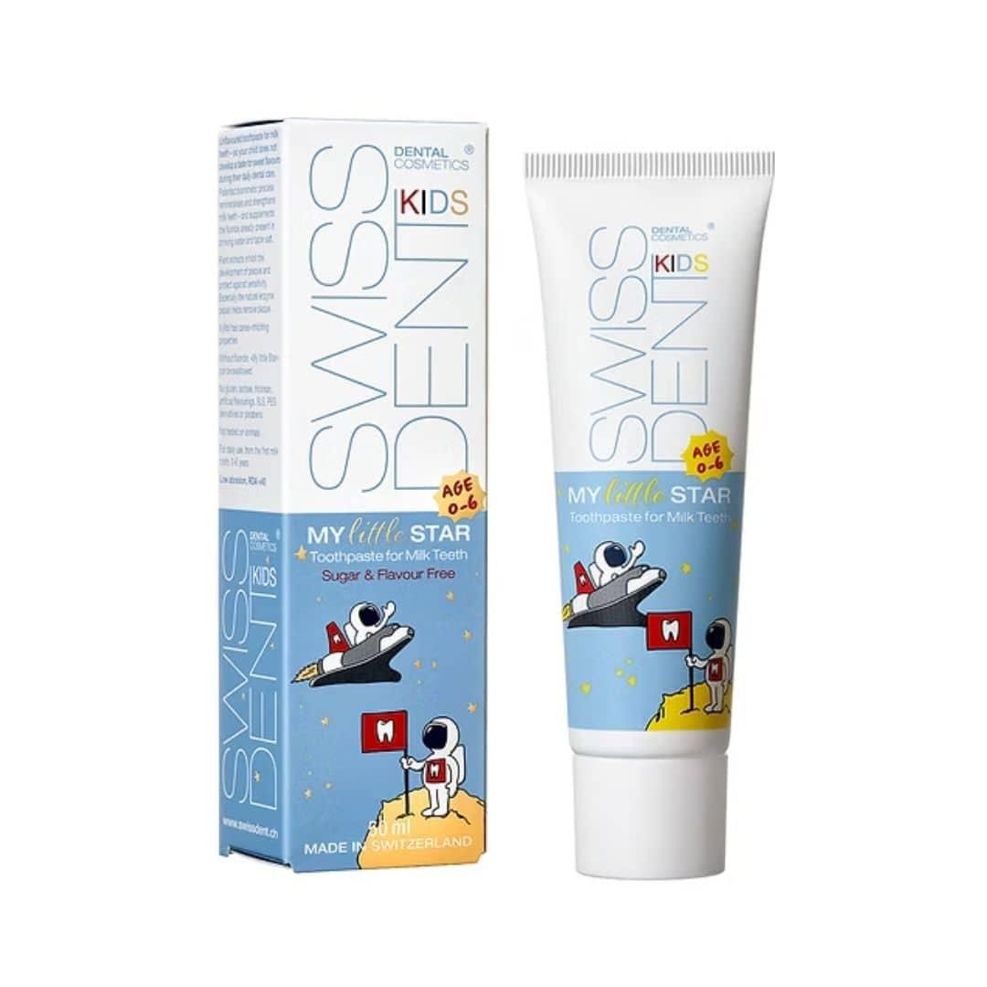 Teaduslikud uuringud on näidanud, et imikud, kes regulaarselt tarbivad magustatud toite ja jooke, eelistavad magustatud jooke kuni kümnenda eluaastani ja enamasti ka täiskasvanueas. Seetõttu on eriti oluline vältida magusaid maitseid juba varakult, et tagada hiljem mõõdukas suhkrutarbimine. Nagu kõik SWISSDENT hambapastad, sisaldab ka «My Little Star» spetsiaalset kõrgtehnoloogiliste ja looduslike ensüümide kombinatsiooni: Patenteeritud biomimeetiline protsess remineraliseerib ja tugevdab piimahambaid, täiendab joogivees ja lauasoolas juba leiduvaid fluoriide. Taimsed ekstraktid pidurdavad hambakatu teket ja aitavad vältida tundlikkust. Looduslik ensüüm papaiin aitab eemaldada hambakattu ja värvimuutusi. Ksülitoolil on kaariese ennetavad omadused. Ei sisalda fluoriidi: «My Little Star» on ohutu alla neelata. Ei sisalda gluteeni, laktoosi, triklosaani, kunstlikke lõhna- ja maitseaineid, SLS-i, PEG-derivaate ega parabeene Ei ole testitud loomadel, vegan Sobib igapäevaseks kasutamiseks alates esimesest piimahambast, 0–6 aastat Madal abrasiivsus, RDA