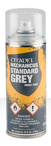 Mechanicus Standard Grey is designed for basecoating all Citadel miniatures. When sprayed over an undercoat, it's a fast way to get a uniform base of colour onto your models. The colour in this spray is exactly the same as Citadel Base: Mechanicus Standard Grey, so if any part of the model gets missed when spraying, a quick tidy up with the equivalent paint will provide a complete basecoat. This can contains 400ml of Mechanicus Standard Grey Spray.
