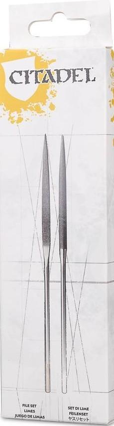 Files are used to remove the small imperfections that may be created when you cut the model from it’s frame. This set contains two files; one rough and one fine. Both are half round in shape and feature a fine point, enabling you to file down and polish your miniature to a perfect finish.