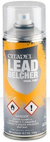 Leadbelcher Spray is designed for basecoating all Citadel miniatures. When sprayed over an undercoat, it's a fast way to get a uniform base of colour onto your models. The colour in this spray is exactly the same as Citadel Base: Leadbelcher, so if any part of the model gets missed when spraying, a quick tidy up with the equivalent paint will provide a complete basecoat. This can contains 400ml of Leadbelcher Spray.