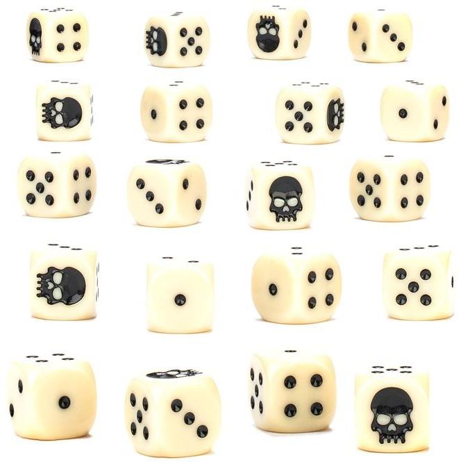 Is it luck, or do some dice really roll better? While we can’t guarantee perfect results every time, this set is ideal whenever you need to generate a number between 1 and 6. This set includes 20 six-sided dice with rounded edges, designed for use in Warhammer 40,000, Warhammer Age of Sigmar, Warhammer: The Horus Heresy, Warhammer: The Old World, and other tabletop systems. Made from ivory-coloured acrylic plastic with black markings, each die measures 12mm. Faces 1–5 use traditional pips, while the ‘6’ features a distinctive skull icon.