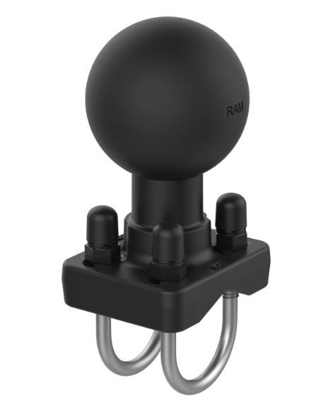 The RAM-D-235U consists of a double u-bolt base with 2.25" diameter ball and two stainless steel u-bolts. The double u-bolt base will accommodate rails from 1" to 1.25" in diameter.