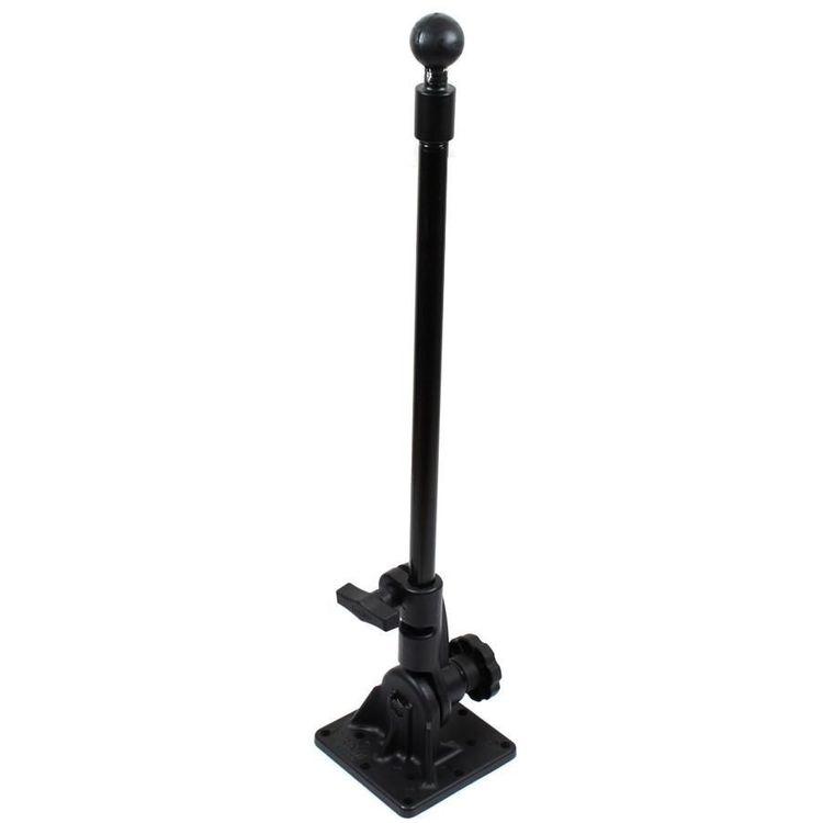 The RAM-102U-B-2461 consists of a SHORT double socket arm and 3.625" square plate with VESA hole pattern. The VESA plate contains 75x75MM hole patterns. The rubber ball is positioned 0.88" from the center of one edge.