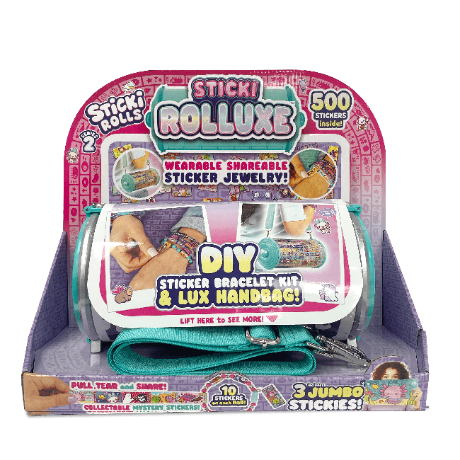 Tutvustame Sticki Rolls kleepsumaailma! Kanna neid käel kaasas ja jaga sõpradele! Kui kõik kleebised su käevõrul on ära kasutatud, saad need lihtsalt välja vahetada! Ainulaadne klambersüsteem võimaldab lihtsat rulli vahetamist ilma sõlme tagasi sidumata. Lihtsalt võta klamber lahti, vabasta sõlm ja vaheta Sticki Rolls kleepsurullid välja! See on täiesti UUS Sticki Rolls DIY ehtekomplekt, mis sisaldab uusi JUMBO kleebiseid ja kõike 10 käevõru ja 2 kaelakee valmistamiseks!