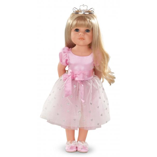 Mängi koos Götz Puppenmanufakturiga! Götz loob uusimaid nukumoode, mis on valmistatud kõrgeimate standardite järgi. Toas või õues, suvel või talvel - Götzi nukud on suurepärased kaaslased lastele. Götzi nukk pakub multifunktsionaalset rollimängu, arenedab laste kujutlusvõimet ning kognitiivseid oskusi. Götzi nukud ja aksessuaarid on välja töötatud ja kujundatud Saksamaal - võttes alati arvesse uusimaid trende. Hannah on tõeliselt armas printsess! Tal on seljas imeline roosa tüllkleit, mida kaunistavad sädelevad südamed. Hõbedane tiaara tema pikkades blondides juustes teeb temast tõelise printsessi! Koos kleidiga kannab Hannah roosasid kingi, mida samuti kaunistavad sädelevad südamed. Ka printsessid tahavad mängida mänguväljakul või käia piknikul, selleks on Hannah vabaajariietus. Stiilsed teksad, t-särk ja trendikad jalatsid. Hannah vallutab iga väikese tüdruku südame oma isikupära ja võluga. Hannah on suurepärane sõber igale tüdrukule, tema mängumaailm ergutab loovust. Hannah on armas käsitöönukk tuntud Götz nukuperekonnast. Kõik Götz nukud on valmistatud piiratud koguses kõrgeimate kvaliteedi standardite järgi ning vastavalt nummerdatud. Götz nuku näo on kujundanud tuntuimad nukudisainerid. Kvaliteedi märgiks on kõikidel Götz nukkudel kaasas pitsatiga autentsussertifikaat. Nuku tegemisel on kasutatud ainult kvaliteetseid loomuliku välimusega juukseid, mis õmmeldud nukule pähe ja on väga vastupidavad. Juukseid saab pesta, kammida ja teha soenguid. Liigendpunktidega, vinüülkehaga nukk. Soovitame lastele alates 5-aastast.