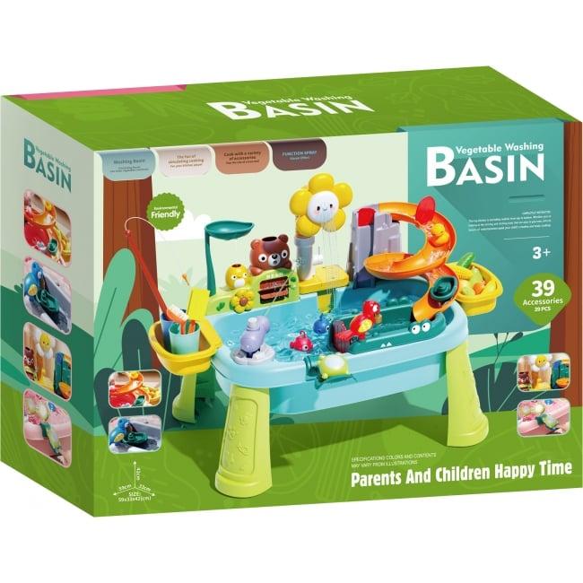 See suur veemängu keskus on lõbus ja arendav rollimängu komplekt, mis pakub lapsele pikalt avastamisrõõmu. Komplekt sisaldab erinevaid tarvikuid kokkamiseks ja kalapüügiks ning arendab loovust ja peenmotoorikat. Keskusel on eemaldatavad jalad, mis muudab mängimise mugavamaks nii seistes, kui lauapinnal. Pilvekujuline kraan ja veeringlussüsteem loovad realistliku veemängu ning õpi vee säästmise nippe.
