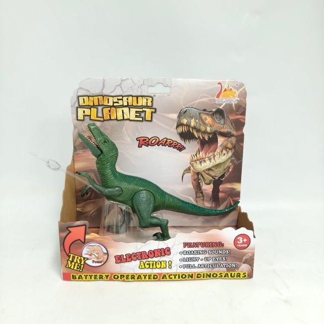 Mõeldud dinosauruste fännidele! Mänguasi võimaldab lastel mängimise ajal oma kujutlusvõimet täiel määral kasutada, luues stseene nende lemmikfilmidest ja multikatest. Dinosaurus liigub edasi, kõigutab oma keha ning tal on elutruud valgus- ja heliefektid.