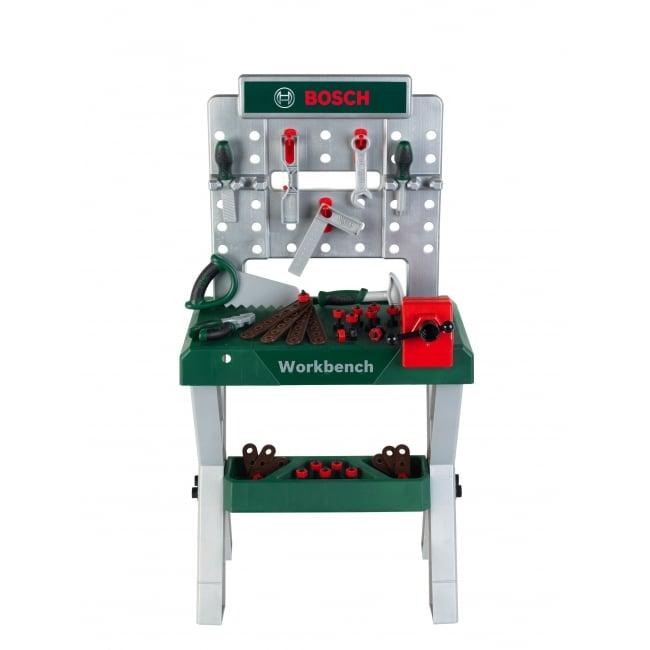 Valmistatud Saksamaal, Bosch litsentsiga töölaud 56-osalise komplektiga: tööriistad (viil, mutrivõti, tangid, saag, kruvikeeraja, lood, nurgik, haamer) ja tarvikud (4 pikka + 8 lühikest liistu, 16 kruvi ja mutrit, 1 kruustang) – põnev ja arendav komplekt lastele, kes armastavad meisterdada ja mängida ehitamist.