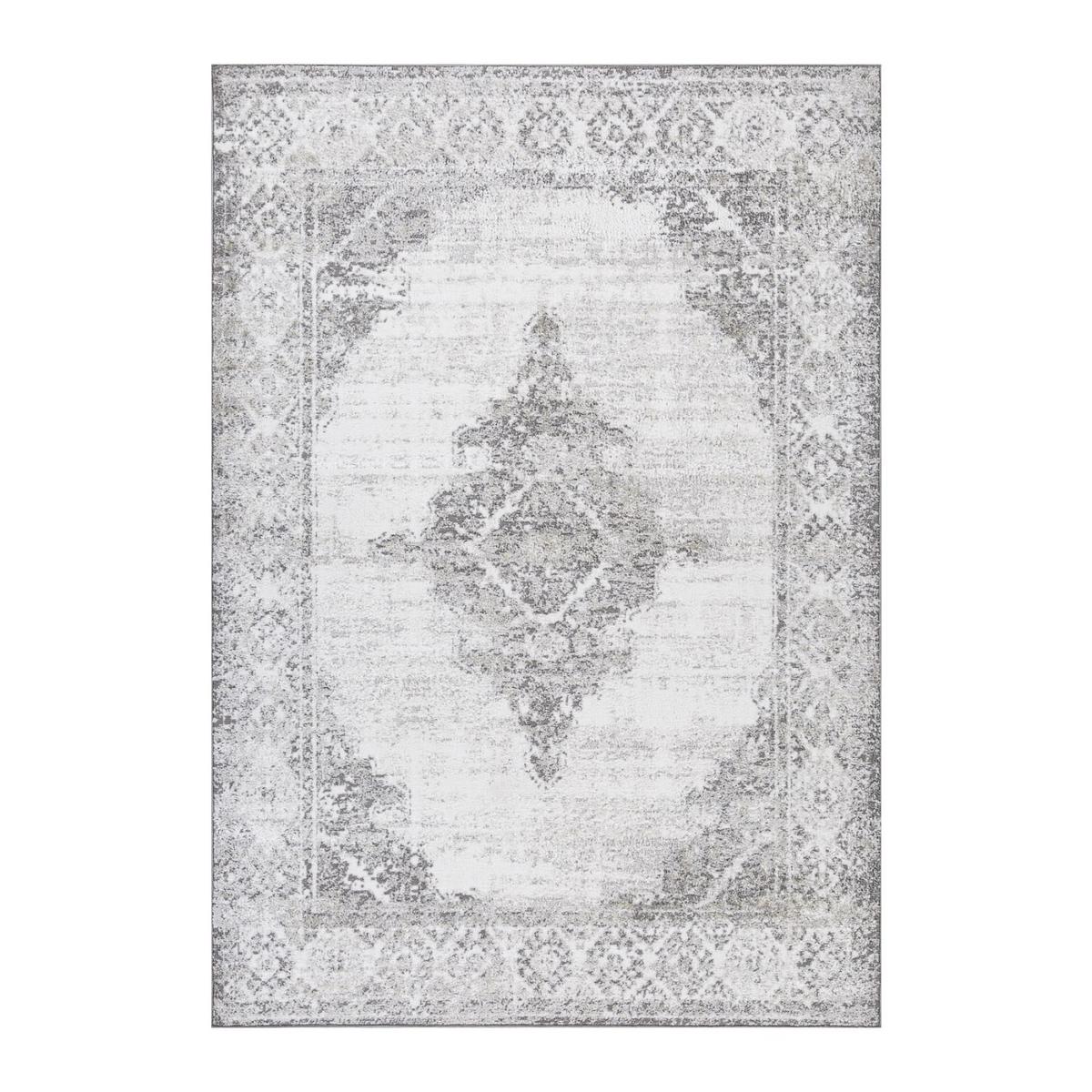 Vaip SALAMANCA-1, 200x285cm, valge/hall. Kvaliteetne Egiptuse madala karvaga vaip. Narmaste kõrgus 10 mm. Ääreosa koostis: 100% polüpropüleen. Vaiba alus: polüester. Overlok mööda äärt. Kaal: 1100 g/m2. Tootmisprotsessist tulenevalt võib vaiba tegelik suurus sildil märgitud suurusest erineda 5,5%.