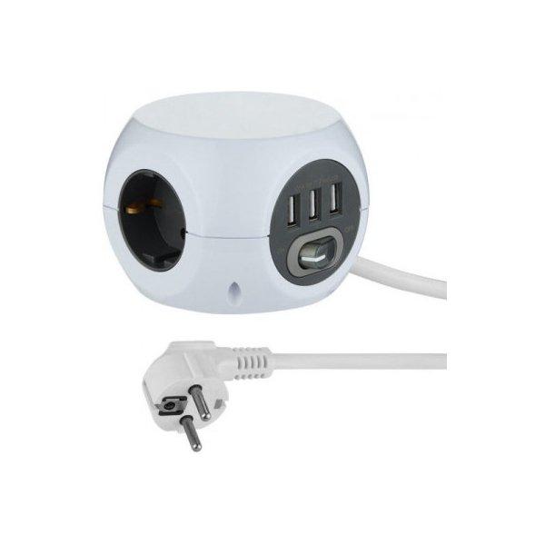 Pikendusjuhe Electraline 62078, 3 pistikupesa ja 3 USB, 1,5 m