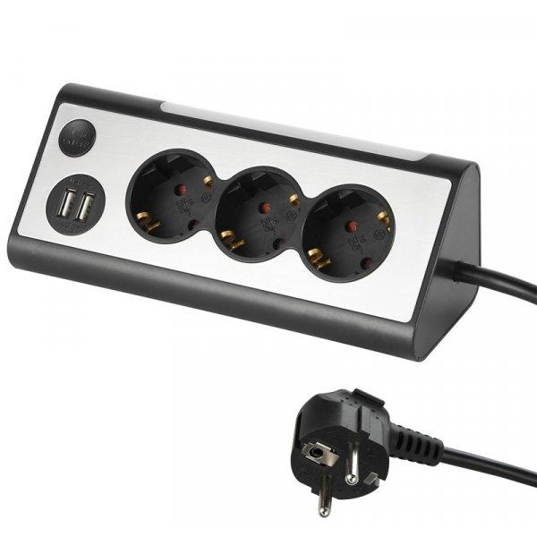 Pikendusjuhe Electraline 62512, 3 pesa + 2 USB, 1,5 m