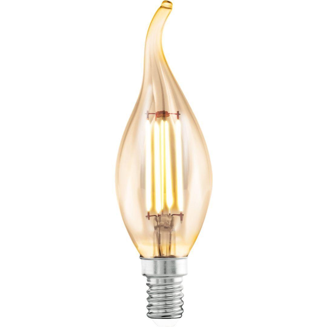 Eglo dekoratiivne LED-lamp Amber, mille võimsus on 4 W. LED-lamp on ekstra sooja valgusega, ei ole dimmerdatav.• Sokli tüüp: E14• Lambi kuju: CF37• Valguse temperatuur: 2200 K • Valgusvoog: 220 lm