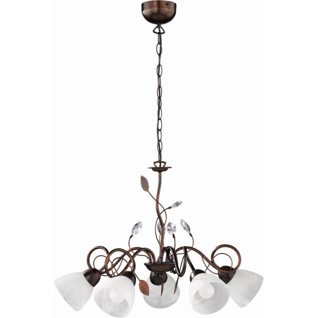 Trio laelamp Traditio on 5 x E14 sokliga ja võimsusega 40 W (lamp ei kuulu komplekti). Laelambi diameeter on 70 cm ja kõrgus 150 cm. Valgusti korpus on metallist ning klaas valge varjundiga. Alusel on metallist ja plastist lehtede kaunistused.