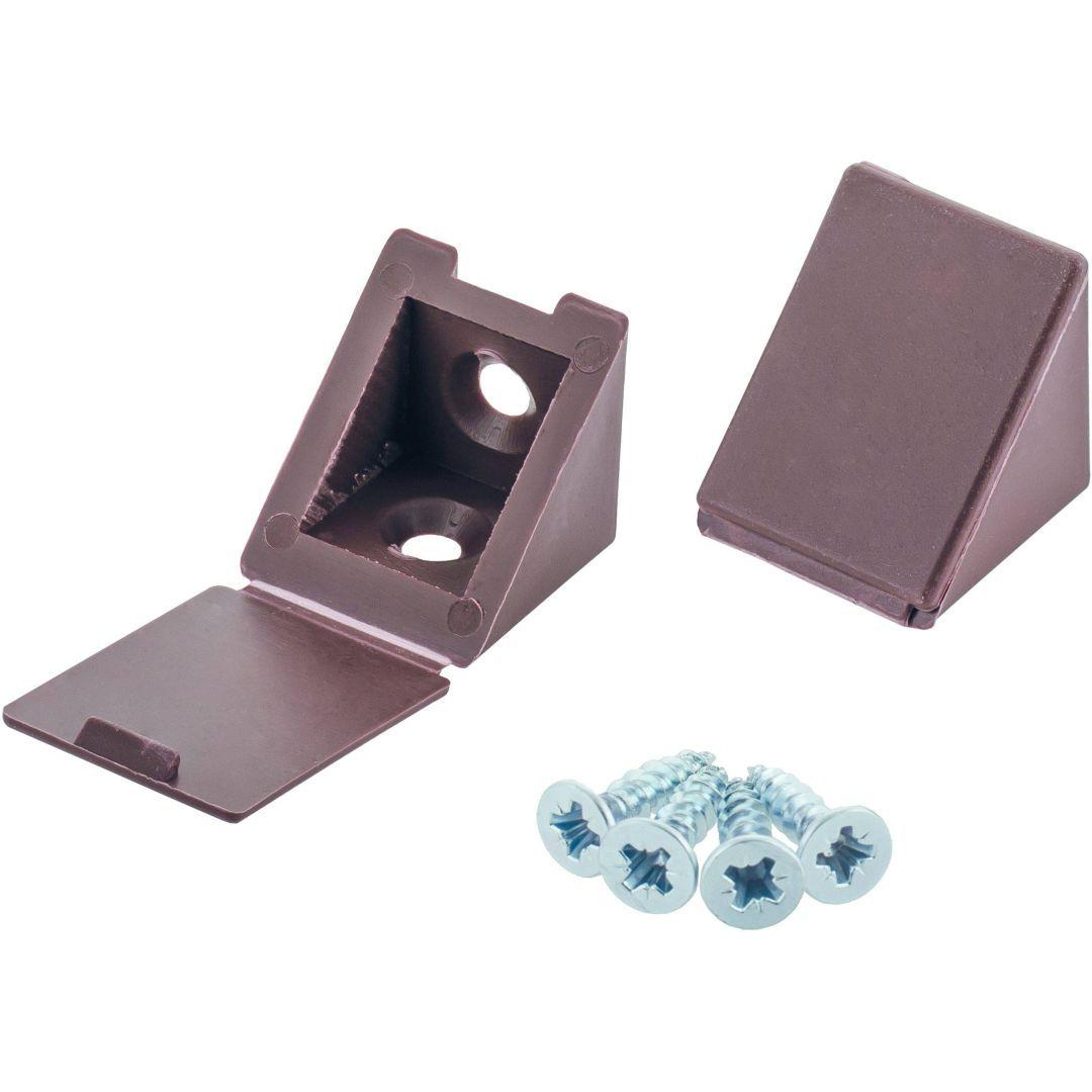 Suki plastikust nurga fiksaator on mõõtmetega 35 x 25 x 25 x 25 mm, pruuni värvi.