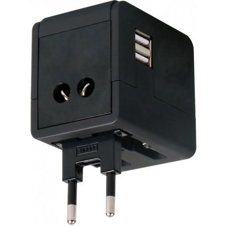 * Kompaktne lahendus reisivale inimesele * 4 pistikut ühes adapteris * Sobib kasutamiseks igal mandril * Kaks USB pesa 2,1 A koguväljundiga * Kompaktne – mugav kaasa pakkida