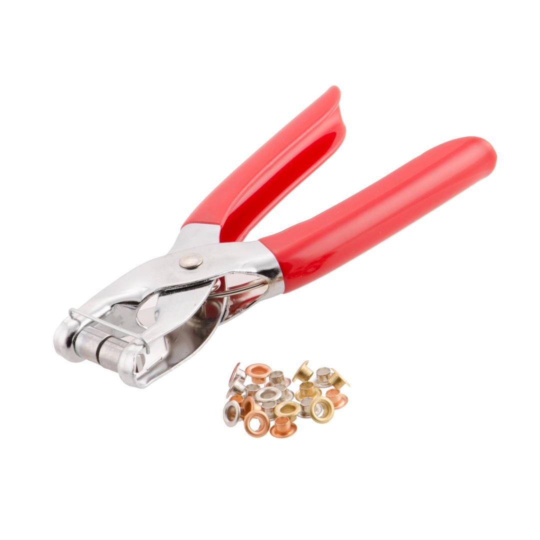 Suki terasest öösitangi. Pikkus on 150 mm. Tsingitud ja karastatud. Komplekti kuulub 100 öösi, läbimõõduga Ø 5 mm, erinevad värvid. Plastikust lohkus käepidemed.