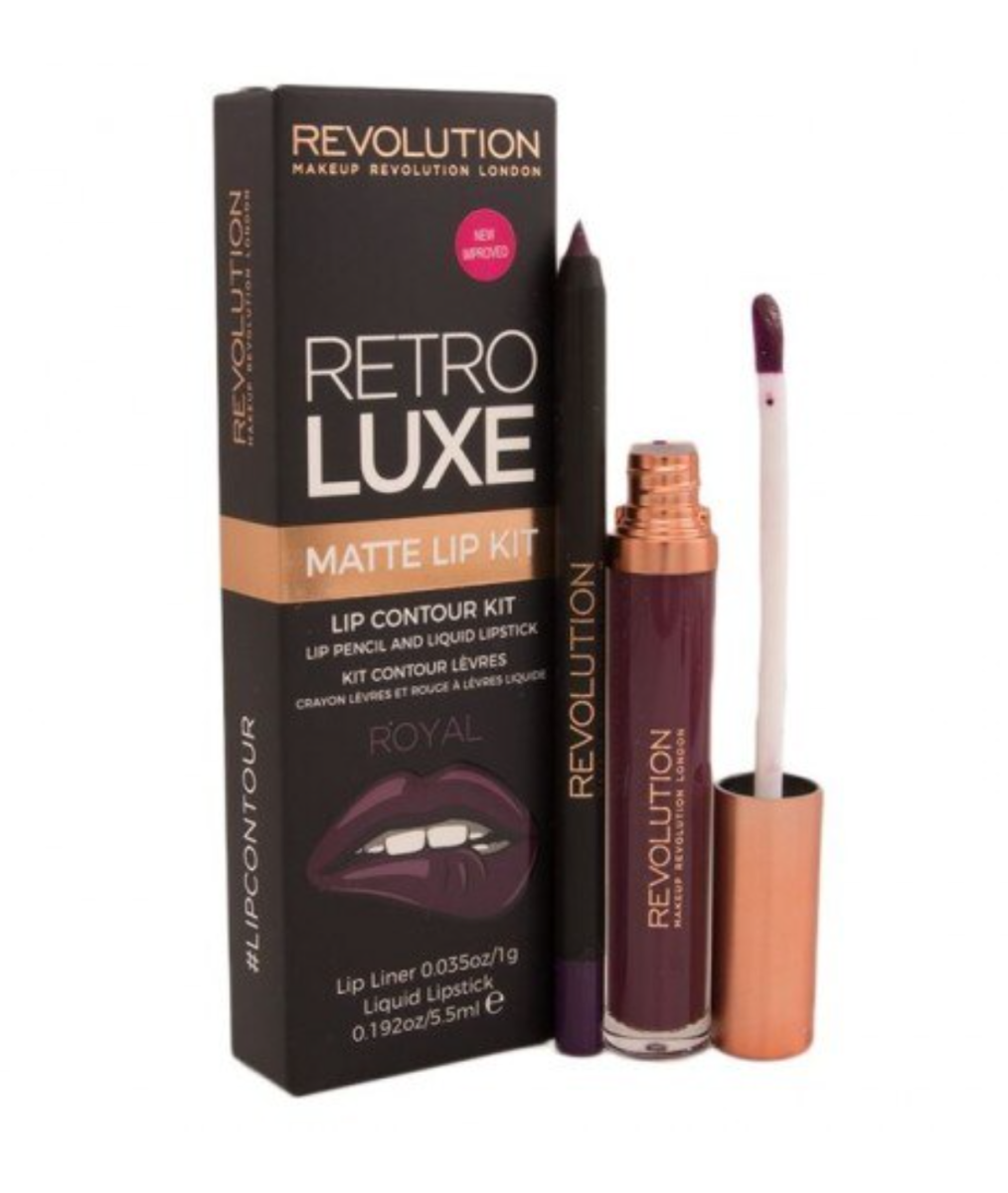 Revolution Set Makeup Revolution: Retro Luxe Matte Liquid Lipstick Royal 5.5 ml + Retro Luxe Lip Liner Royal, 1 g