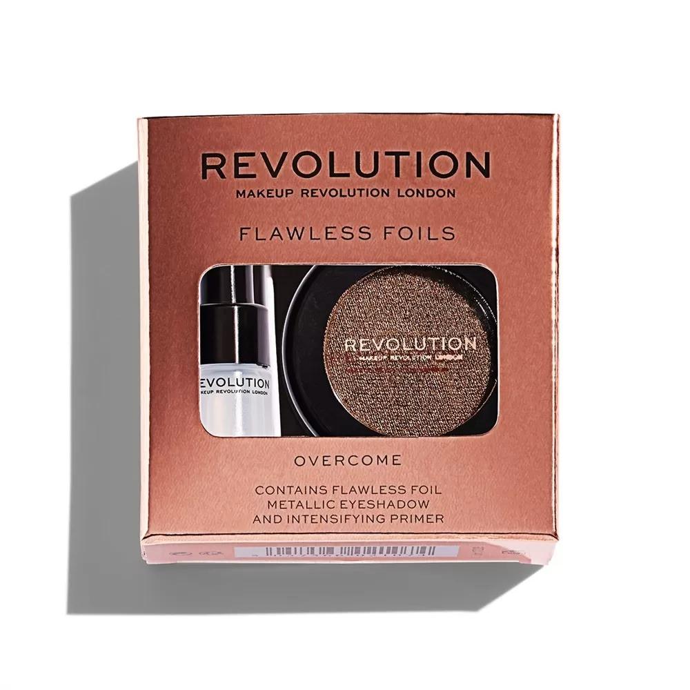 Revolution Set Makeup Revolution: Flawless Foils Vegan Eyeshadow Primer, 2 ml + Flawless Foils Vegan Eyeshadow Palette Overcome, 2 g
