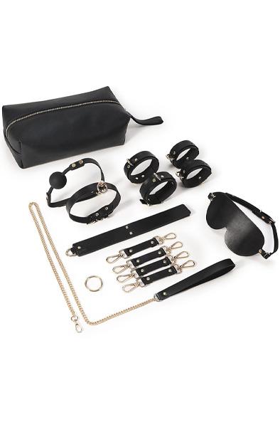 - Avasta oma domineeriv / alistuv külg - Vegan nahk Must BDSM-komplekt, mis on loodud täitmaks sinu kõige metsikumaid BDSM-fantaasiaid. Komplekt sisaldab spetsiaalselt disainitud ümmargust kotti, laksulabidat, bondage-kaelarihma ja jalutusrihma, suukorvi (gag), silmakatet, 4-suunalist hogtie’d, käeraudu ja jalaraudu. Kõik need tooted on valmistatud ülima hoolega, pöörates tähelepanu nii esteetikale kui ka funktsionaalsusele.Komplekt on saadaval musta värvi, mis sümboliseerib kirge ja intensiivsust. Spetsiaalselt disainitud ümmargune kott mahutab kõik esemed mugavalt ning võimaldab neid diskreetselt hoiustada, kui need pole kasutuses. Lisaks annab see kott sinu mängudele elegantsi.Iga komplektis sisalduv ese on valmistatud kvaliteetsest veganlikust PU-nahast, mis tagab ehtsa naha luksusliku välimuse ja tunde, olles samal ajal loomade suhtes sõbralik.Kõik komplekti tooted on hoolikalt disainitud pakkumaks nii vastupidavust kui ka mugavust sinu intiimsetes mängudes.Puhasta esemed lihtsalt niiske lapi ja leebe seebilahusega, et hoida need alati parimas seisukorras. Veganlik PU-nahk sobib suurepäraselt ka vee baasil valmistatud libestitega, suurendades mugavust mängu ajal.Astu julgesti BDSM-maailma ja naudi oma sügavaimaid fantaasiaid selle luksusliku 9-osalise komplektiga.