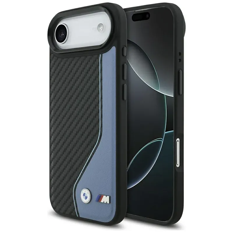 Eksklusiivne ümbris M Carbon Logo MagSafe kollektsioonist on erakordse kvaliteediga kaitse, mis sobib ideaalselt kõigile MagSafe tehnoloogiaga seadmete omanikele. Ümbris ühendab vastupidavuse sportliku stiiliga. Pind on kaetud süsinikmustri ja elegantse sinise ökoloogilise nahaga. Kogu ümbrist kaunistab metallist logo, mis kinnitab toote autentsust ja rõhutab selle prestiiži. Kaamera raam ja nupud on viimistletud musta värviga, andes ümbrisele elegantse ja ühtse välimuse.