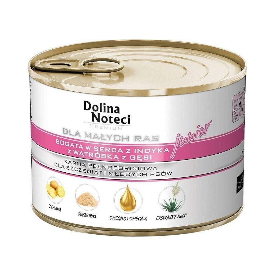 Dolina Noteci Premium Junior konservai mažoms veislėms su kalakutienos širdimis ir žąsų kepenėlėmis 185 g