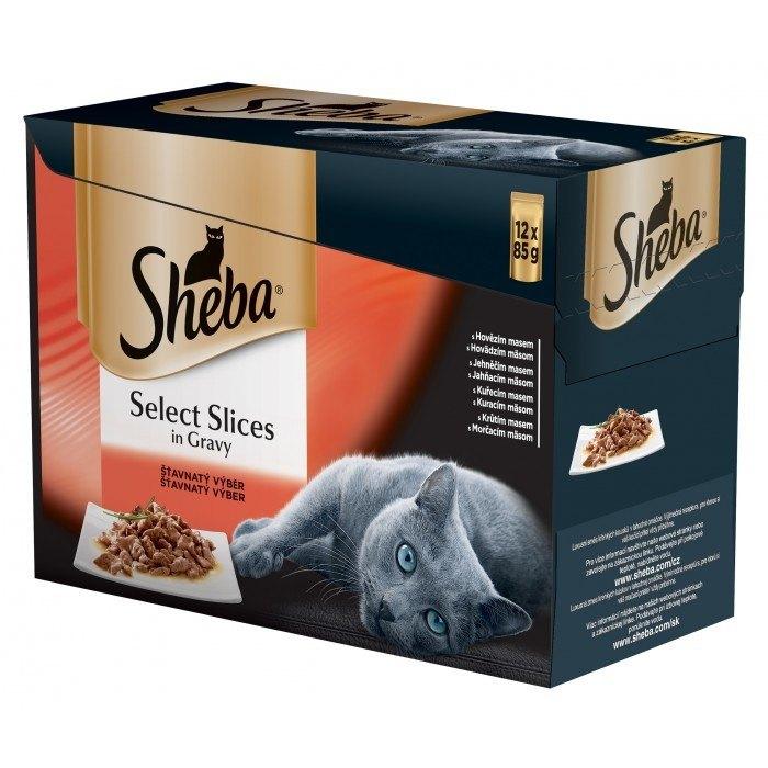 SHEBA saszetka 12x85g Selection in Sauce Soczyste Smaki - mokra karma dla kotów w sosie (z wołowiną, z jagnięciną, z kurczakiem, z indykiem)