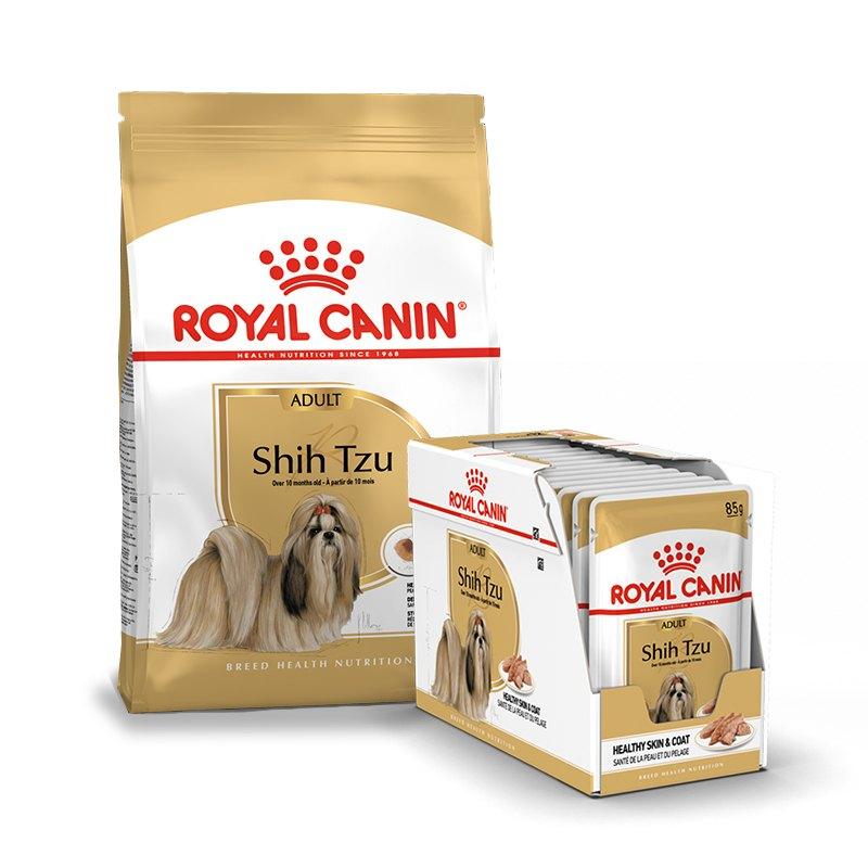 Royal Canin Shih Tzu Adult sausas maistas suaugusiems ših tzu šunims 1,5 kg + 12 x 85 g drėgno maisto paketėlių, gabaliukai padaže
