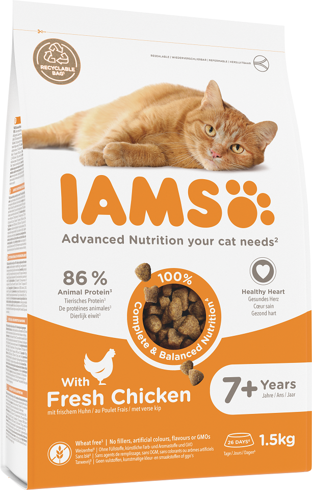 IAMS For Vitality Cat Senior Chicken vanematele kassidele mõeldud kana sisaldav toit 1,5 kg