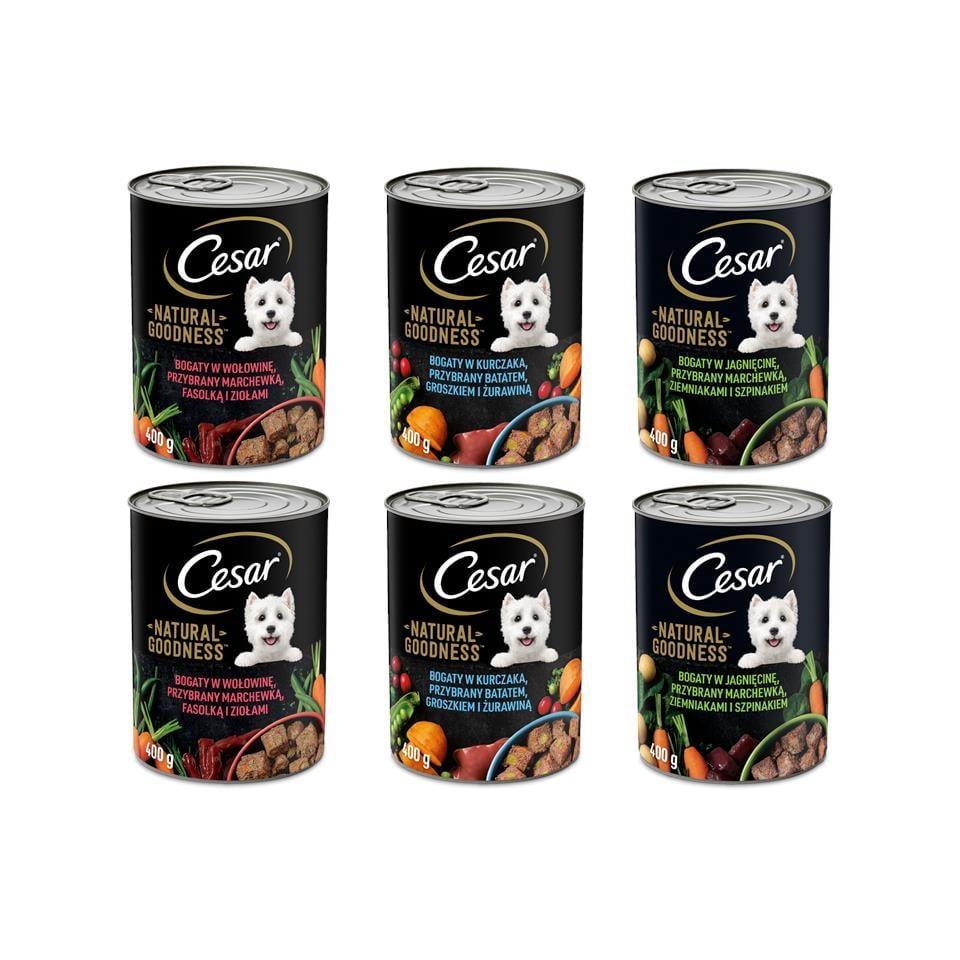 CESAR purk 6x400g - Täielik märgtoit täiskasvanud koertele (lambaliha ja köögiviljadega, veiseliha ja köögiviljadega, kana ja köögiviljadega)