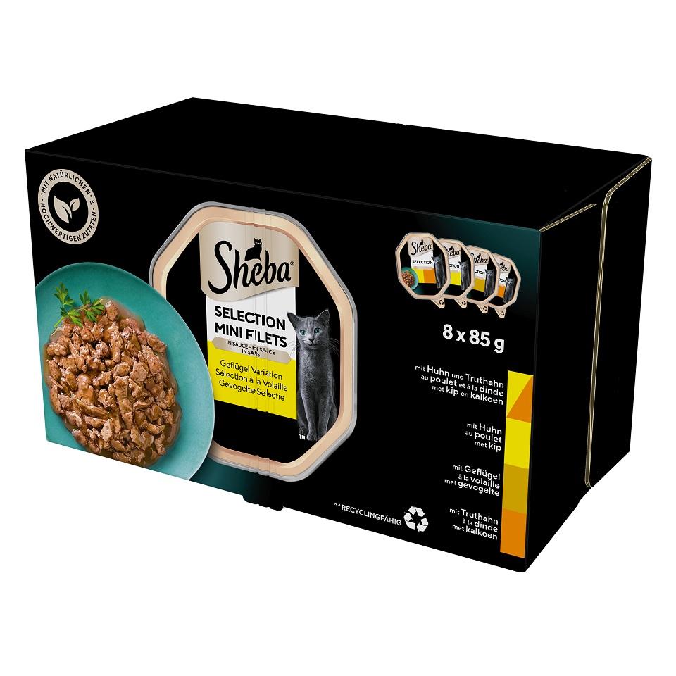 SHEBA Selection Kodulinnuliha maitsed salved 8x85 g kastmes kana ja kalkuniga, kana, kodulinnuliha, kalkuniga