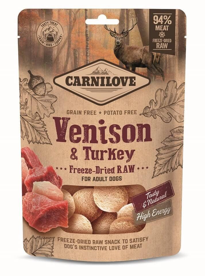 Carnilove Raw Freeze-dried Snack Venison and Turkey 60g liofiliseeritud hirve- ja kalkuniliha tükid täiskasvanud koertele