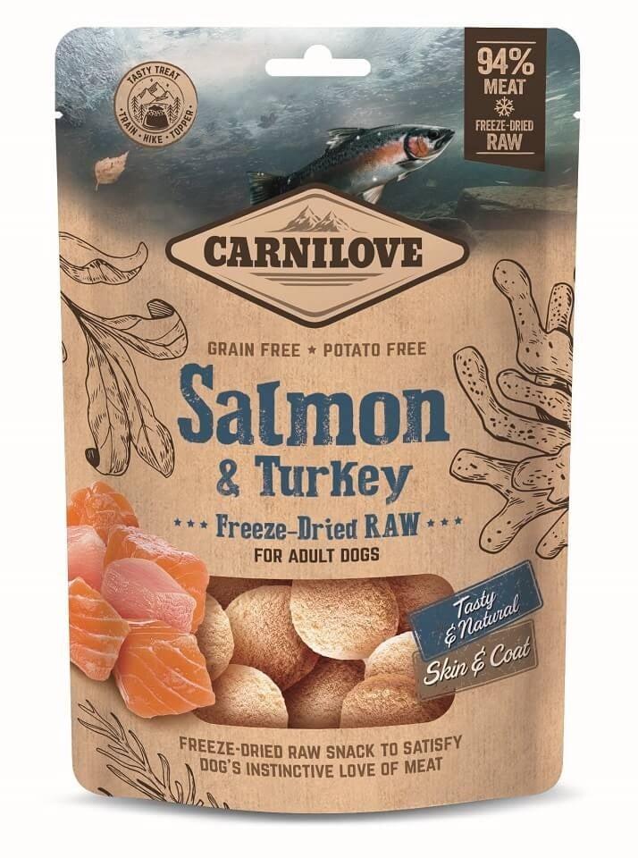 Carnilove Raw Freeze-dried Snack Salmon and Turkey 60g liofiliseeritud lõhe ja kalkuni tükid täiskasvanud koertele