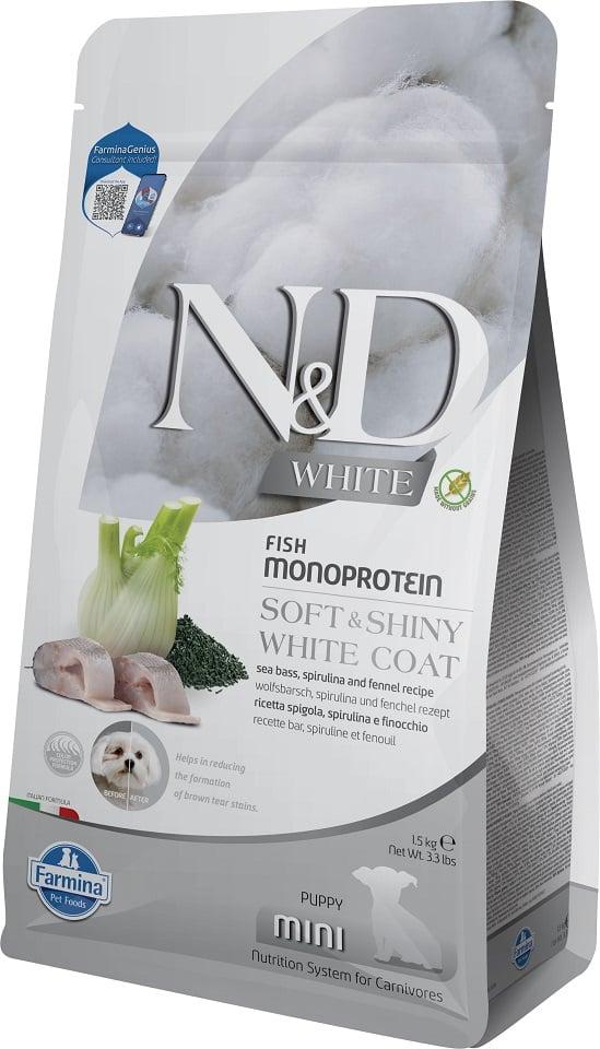 Farmina N&D White Dog Puppy Mini Sea Bass, Spirulina, Fennel 1,5 kg