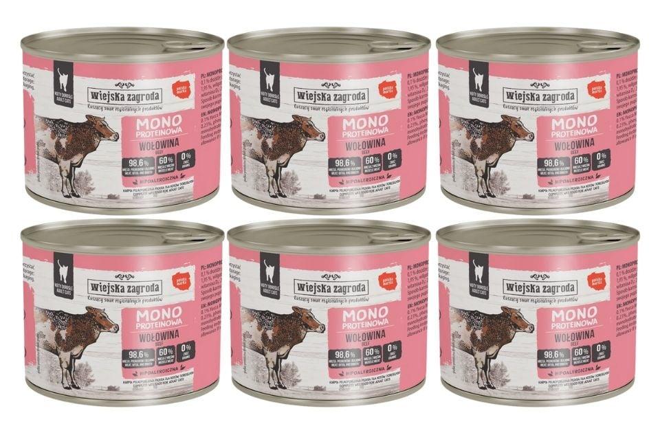Wiejska Zagroda Monoproteiiniline veiseliha märgtoit kassidele 6x200 g