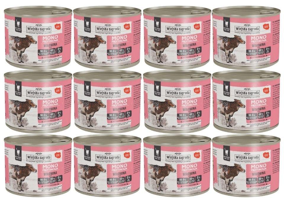 Wiejska Zagroda Monoproteiiniline veiseliha märgtoit kassidele 12x200 g