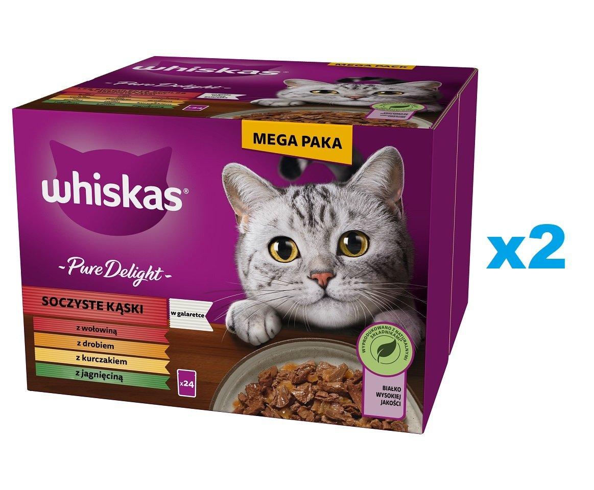 WHISKAS Adult Pure Delight Juicy Jellied Bites 48x85 g tükkidega veiseliha, kana, lambaliha, kodulinnuliha täiskasvanud kassidele