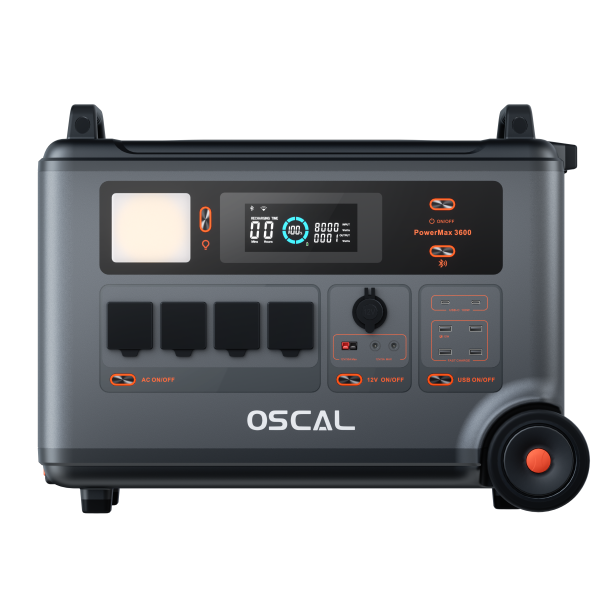 OSCAL PowerMax 6000 päikesegeneraator, 3600 Wh LFP akutoitejaam, laiendatav kuni 57,6 kWh, 120/240 V kahefaasiline pinge, 6000 W vahelduvvoolu pistikupesad (7200 W tipp), 2200 W / 1,96 tundi kiirlaadimine, hädaabiteenus koduseks kasutamiseks