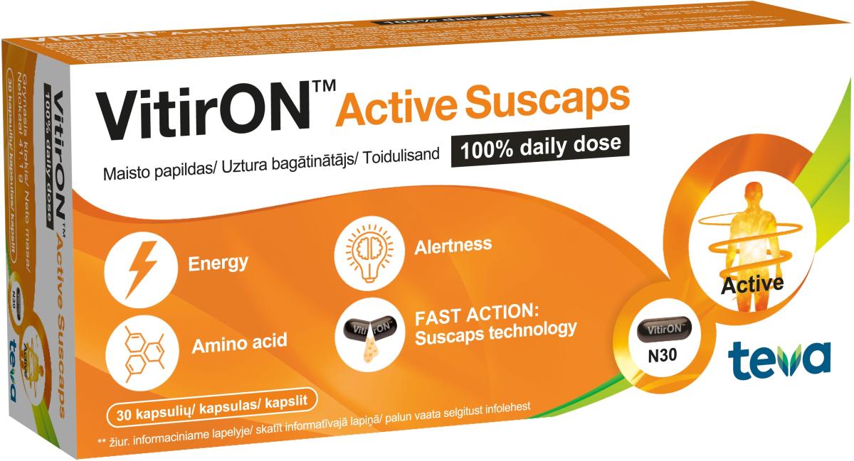 Tootetutvustus VitironTM Active Suscaps Toidulisand Ärge laske oma energiavarudel lõppeda! VitironTM Active Suscaps sisaldab 22 bioaktiivset ainet ja elementi, mis pärast pikaaegseid teaduslikke uuringuid on koondatud ühte preparaati. VitironTM Active Suscaps´i kasutatakse koos tasakaalustatud dieediga ööpäevas vajaliku koguse vitamiinide, mineraalainete ja aminohapete allikana. Toidulisandit soovitatakse kasutada stressirohkel perioodil, samuti ajal, mil immuunsüsteem on nõrgenenud, kroonilise ...