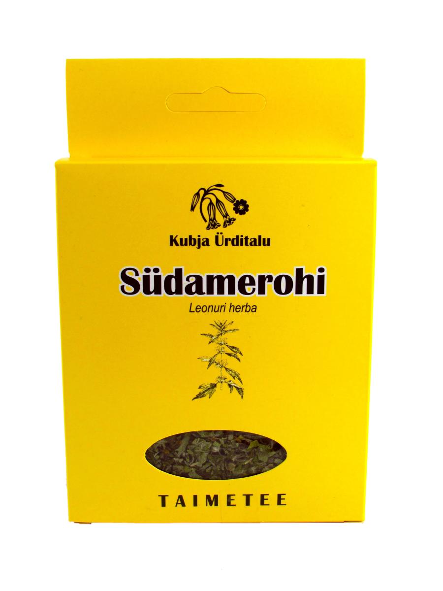 Tootetutvustus Valmistamine ja kasutamine: 2tl klaasitäie leige vee kohta, leotada 8 tundi, kurnata. Juua päeva jooksul võrdsete annustena. Tee on mõru, võib lisada suhkrut. Valmistaja: OÜ Kubja Ürt, Sompa tee 8, 11913 Tallinn, www.kubja.ee. Koostisosade loetelu (allergiat või talumatust põhjustav koostisosa või abiaine märgitud TRÜKITÄHTEDES) Südamerohu ürt Hoiatused Ei sobi raseduse ja rinnaga toitmise ajal. Mõru maitse tõttu ei sobi lastele. Säilitamistingimused Hoida kuivas, valguse eest kai...