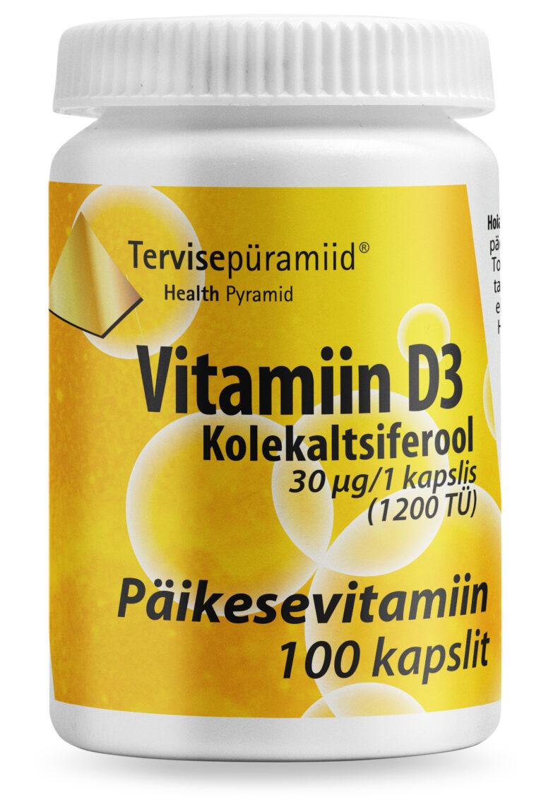 Tootetutvustus Vitamiin D-3 (kolekaltsiferool) tugevdab Sinu luid ja liigeseid ning omab olulist rolli rakkude ainevahetuses Kuna me toiduga D vitamiini saame väga vähe siis väga tihti organism kannatab D vitamiini puuduse all. Samuti kaitseb ja toidab D-3 vitamiin nahka ja eluskudet ning muudab naha kaunimaks ja nooremaks. Vitamiin D-3 regulaarne kasutamine parandab soolestikus kaltsiumi ja magneesiumi ainevahetust ja imendumist. NB! Sojavaba, Gluteenivaba, piimavaba, laktoosivaba, nisuvaba, pä...