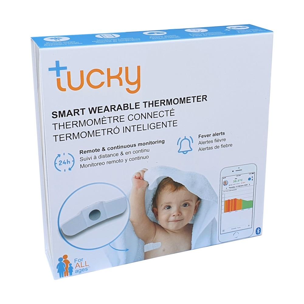 Paindlik ja õhuke Tucky on kehal kantav nutitermomeeter, mis paigutatakse kahepoolse liimiribaga kaenla alla. See edastab temperatuuriandmeid eemalt ja pidevalt Bluetoothi nutitelefoni rakendusele (≤ 5…10 m). See edastatakse omakorda tervisepilve kaudu (≥ 10 m). Rakendus hoiatab teid kõrge palaviku korral ja näitab ka lapse magamisasendit. Tucky-21 on mitteinvasiivne korduskasutatav elektrooniline seade kodus kasutamiseks ning mitteinvasiivne ühel patsiendil kasutamiseks...
