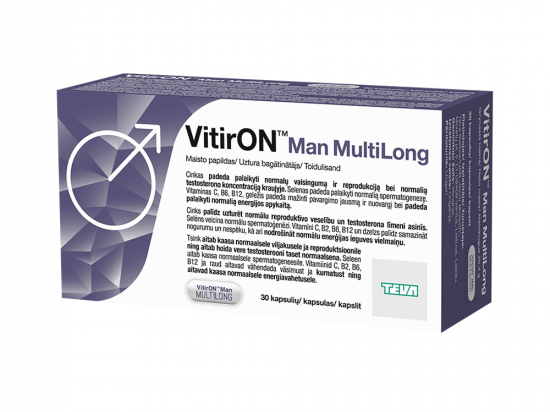 VitirON™ MultiLong on 13 vitamiini + 13 mineraali kompleks, mis lahustub järk-järgult 5 h jooksul, tagades pikema toime ning paremini tasakaalustatud vitamiinide varu, mis on oluline intensiivse füüsilise ja vaimse stressiga toimetulekuks. Netokogus 25,4 g. Päritoluriik: Ungari. Maaletooja: UAB Sicor Biotech Eesti filiaal, Hallivanamehe 4, 11317 Tallinn.