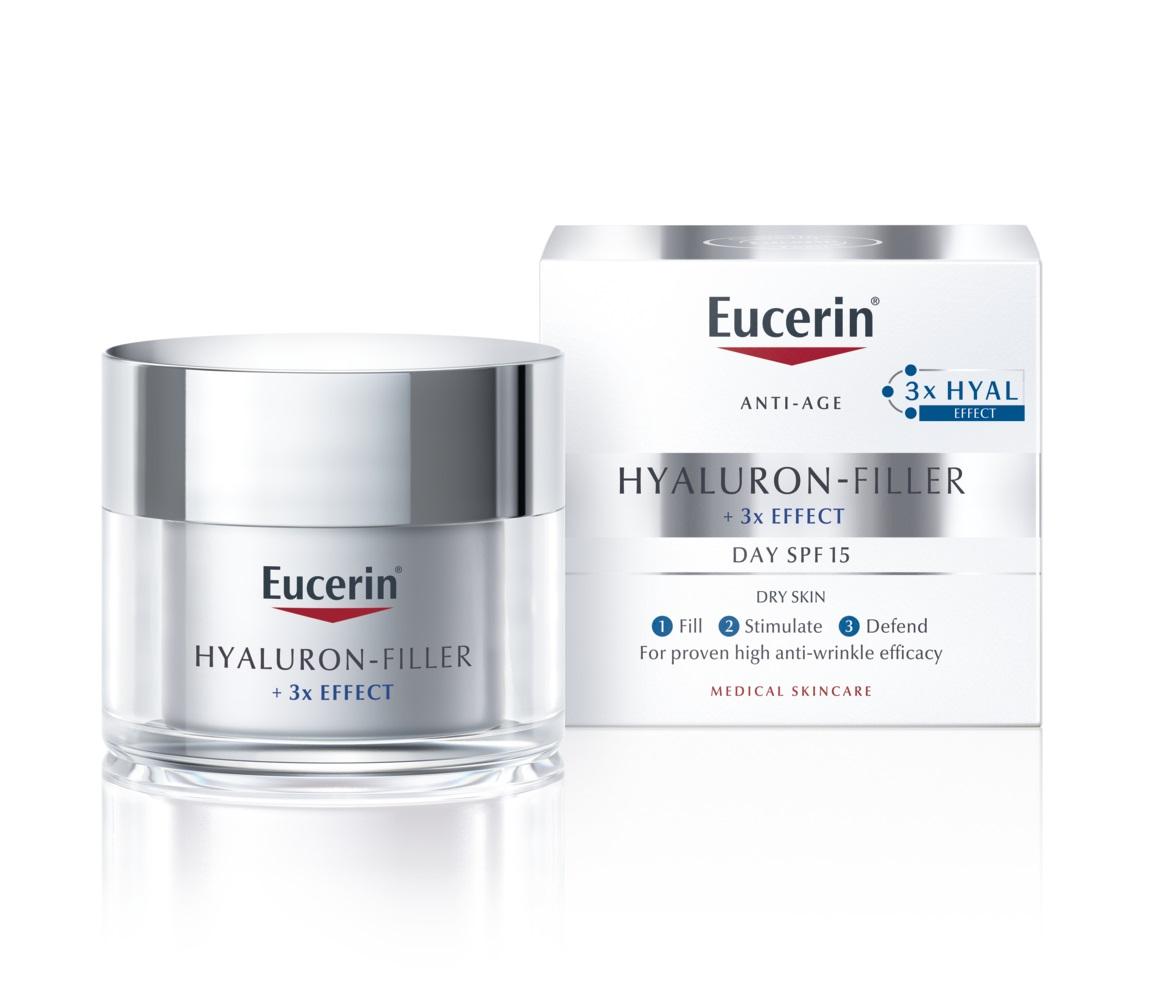 Hyaluron-Filler + Elasticity päevakreem SPF 15 on vananemisvastane päevakreem, mis täidab sügavaid kortse, parandab naha elastsust ja korrigeerib vanusest tingitud laike. Unikaalne koostis pakub mitmeid vananemisvastaseid eeliseid. Eucerini uuenduslik segu kõrge ja madala molekulmassiga hüaluroonhappest täidab nähtavalt sügavad kortsud. Uus kollageeni-elastiini kompleks, võimas kombinatsioon arktiinist ja kreatiinist, taastab kollageeni tootmist ja suurendab naha elastsu...
