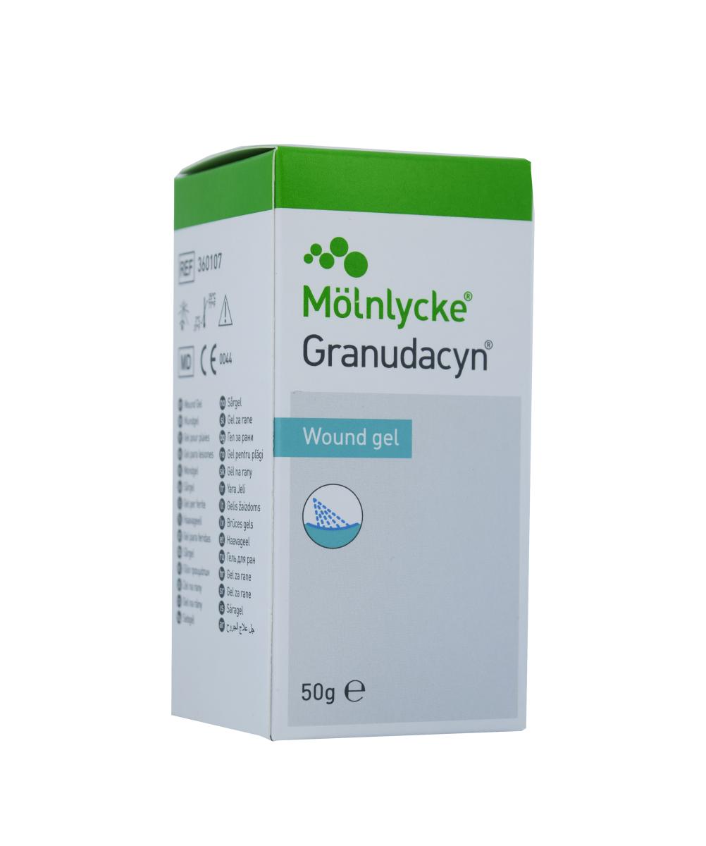 Granudacyn haavageel on akuutsete ja krooniliste haavade puhastamiseks ja niisutamiseks. Puhastab haava mehhaaniliselt. Võib jääda haavale, geel ei ärrita ega ole tsütotoksiline. Granudacyn geeli kulu on väike, haavapõhi tuleb kerge geeli kihiga katta. Toime algab 30 sek. - 5 min. jooksul. Näidustatud: Akuutsed, kroonilised haavad (diabeetilised/venoossed jalahaavandid, lamatised), pindmised haavad; I,II astme põletused, lõikehaavad, marrastused; Fistulid, abstsessid; Na...