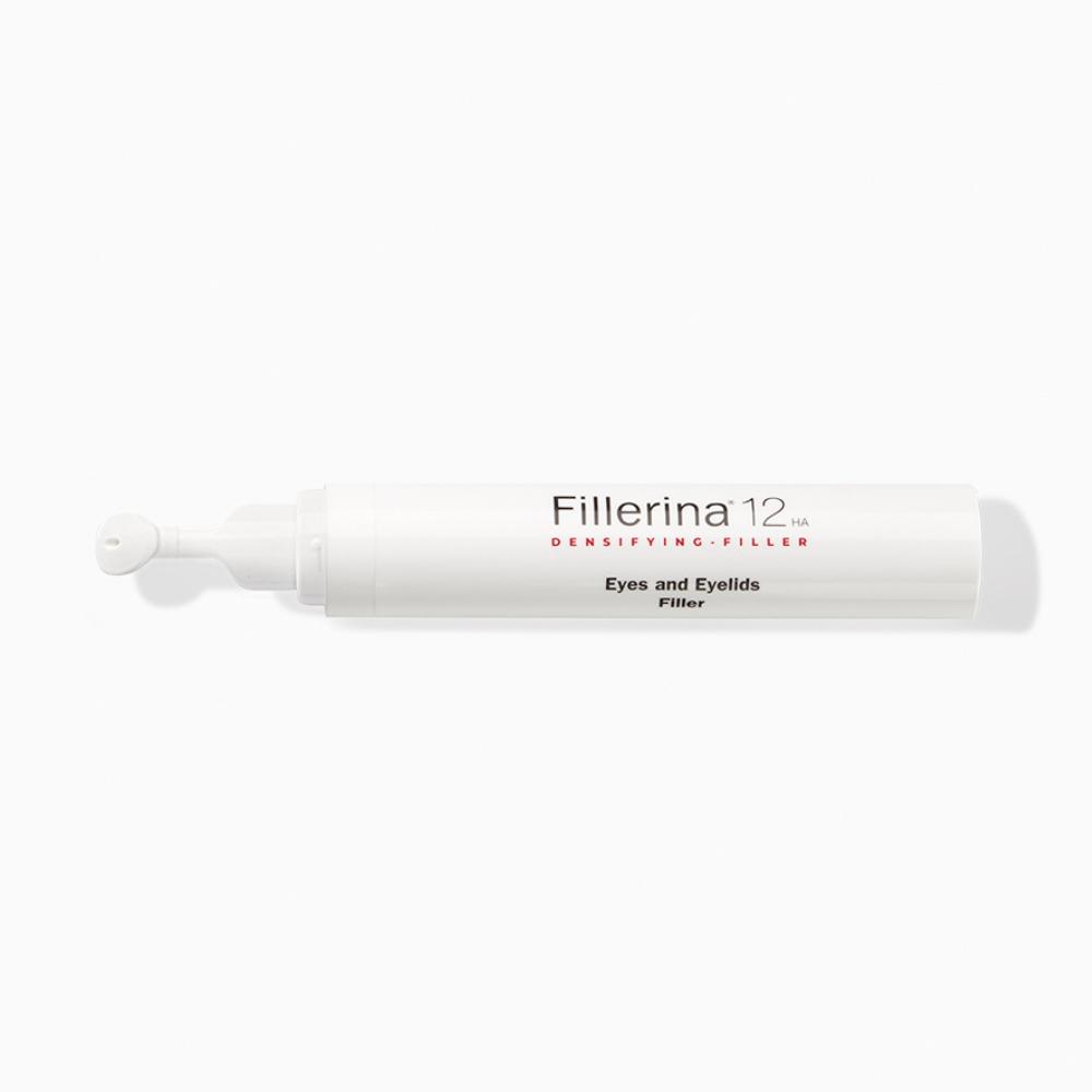 Fillerina 12HA dermakosmeetiline täitegeel silmaümbrustele ja silmalaugudele /Eri tsoonid/ soodustab silmaümbruse kortsude täitumist ja aitab tõsta silmalauge. Toode sisaldab moduleeritud kontsentratsiooni 12-ga hüaluroonhappe molekuli, millele on lisatud 3 erinevat tüüpi kollageeni ja 2 molekuli elastiini, et anda pinguldav toime ja tugevus silmakontuurile ja silmalaugude kudedele. Atsetüülheksapeptiid-30 pakub kortsudevastast toimet, vähendades naha mikrokontraktsioone...