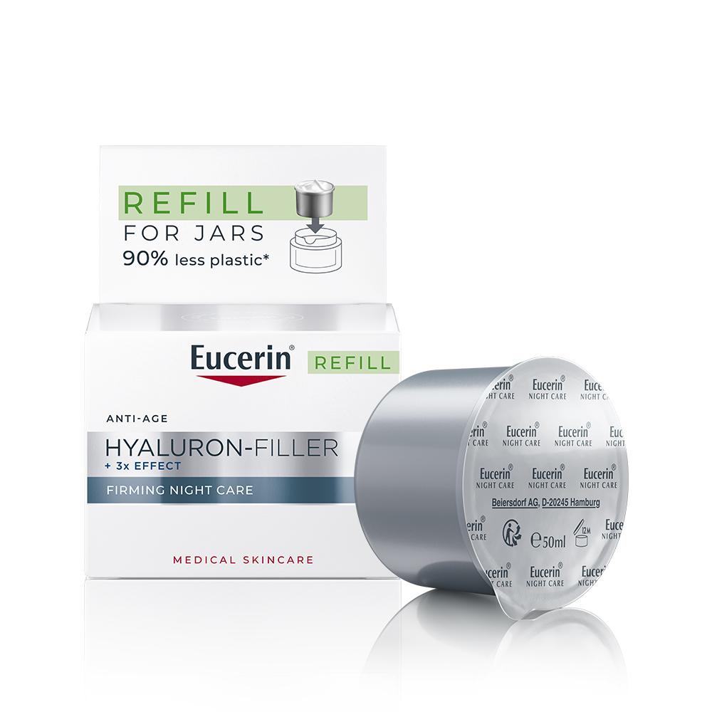 1. Täidab: suure ja väikese molekulaarsusega hüaluroonhape niisutab ja silub kortse. 2. Stimuleerib: antioksüdant saponiin aktiveerib naha enda hüaluroonhappe tootmist kuni 256% ja kaitseb nahka vabade radikaalide eest. 3. Kaitseb: enoksoloon vähendab hüaluroonhappe lagunemiskiirust üle 50%. Toimib vananemisprotsessi vastu. Nähtavalt siledama, särava ja noorema välimusega naha heaks. Seda öökreemi täitepakendit saab kasutada koos kõigi Eucerini näohoolduspurkidega. Täite...